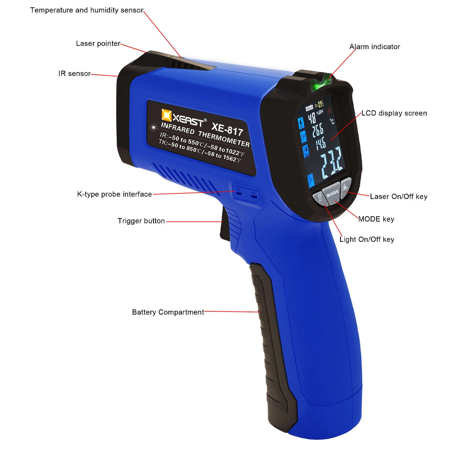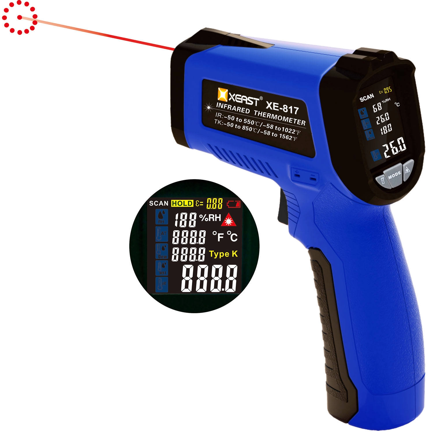 XE-817 热销 6 1 液晶显示屏红外温度计背光塑料材质温湿度计 OEM 可定制