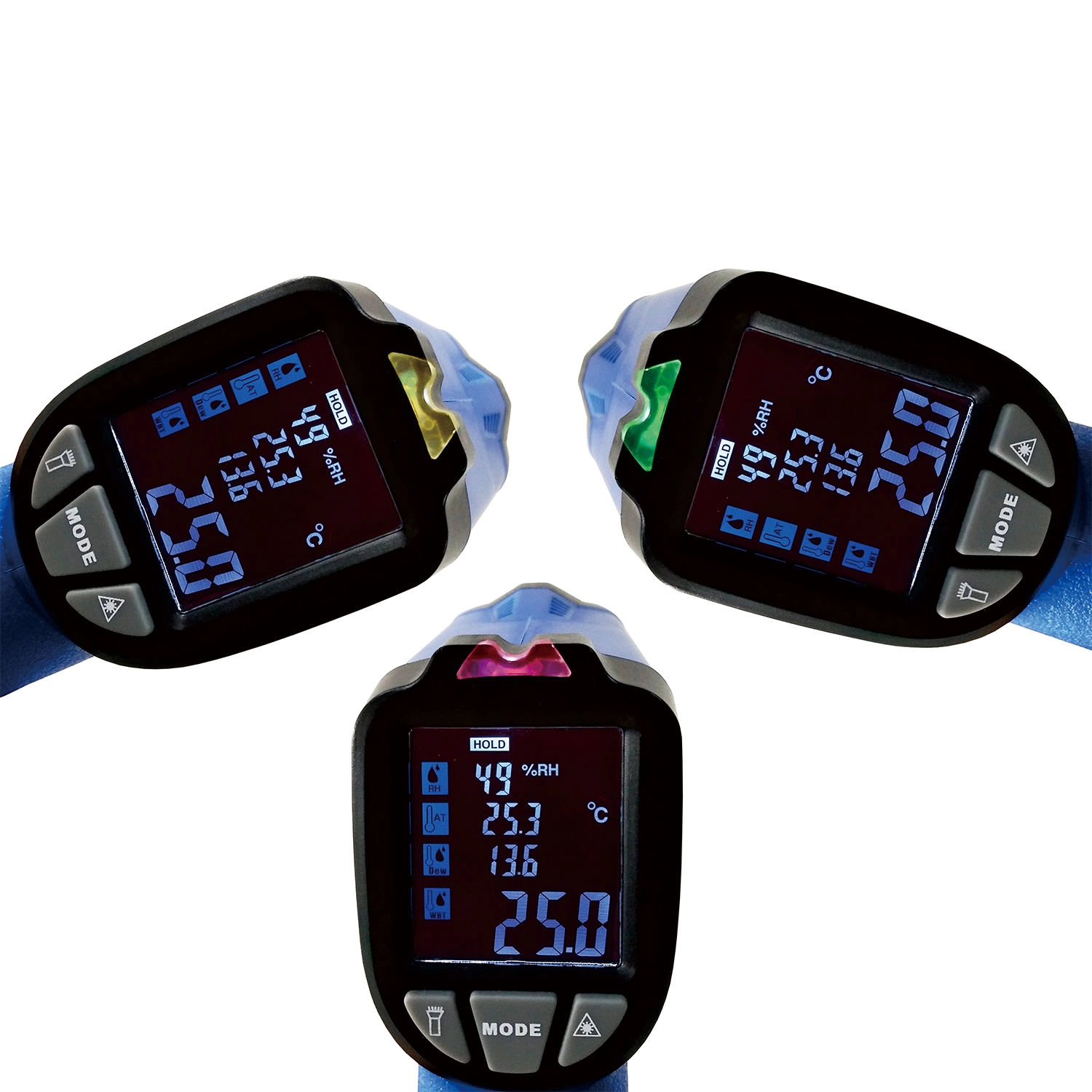 - * K型温度、表面温度、环境温度、环境湿度、露点多功能温度计