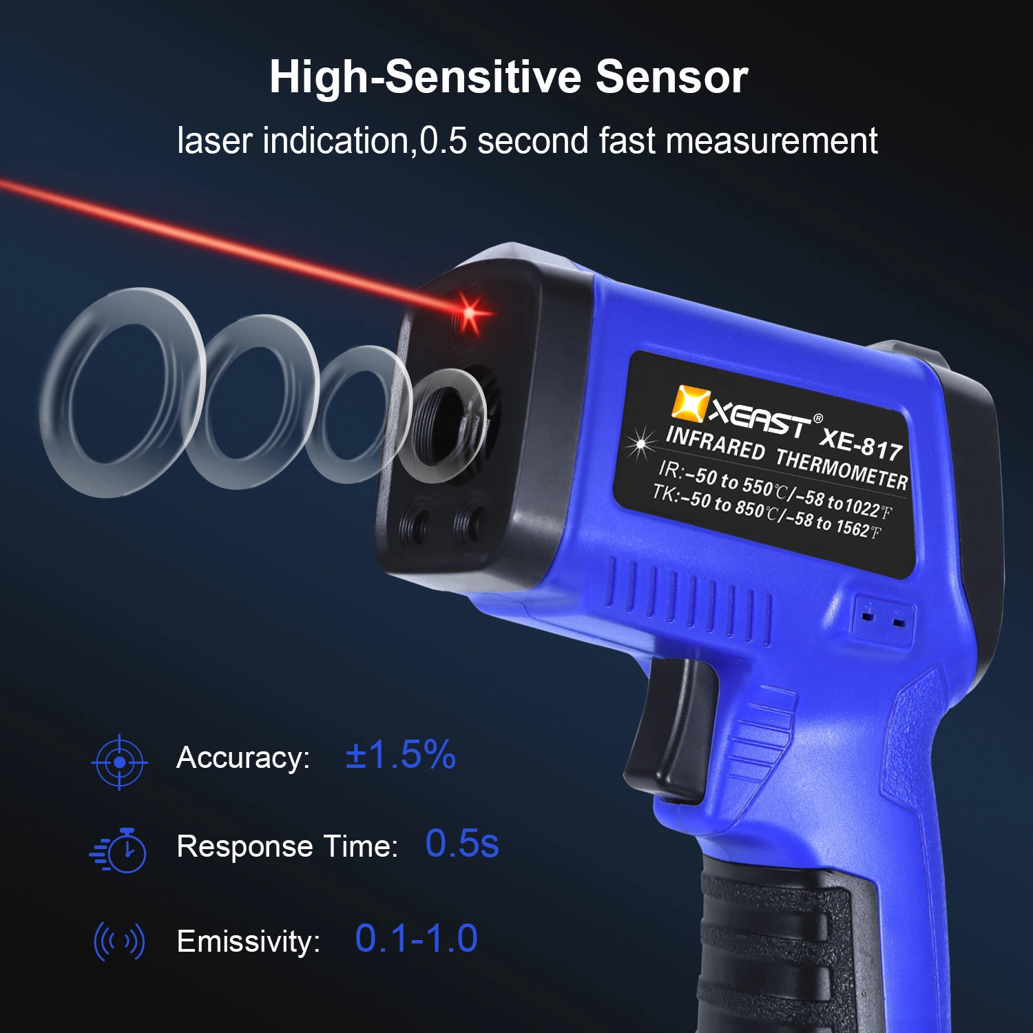 XE-817 热销 6 1 液晶显示屏红外温度计背光塑料材质温湿度计 代加工 可定制