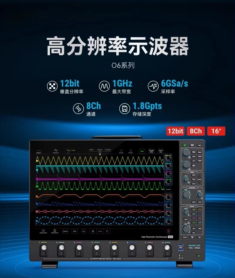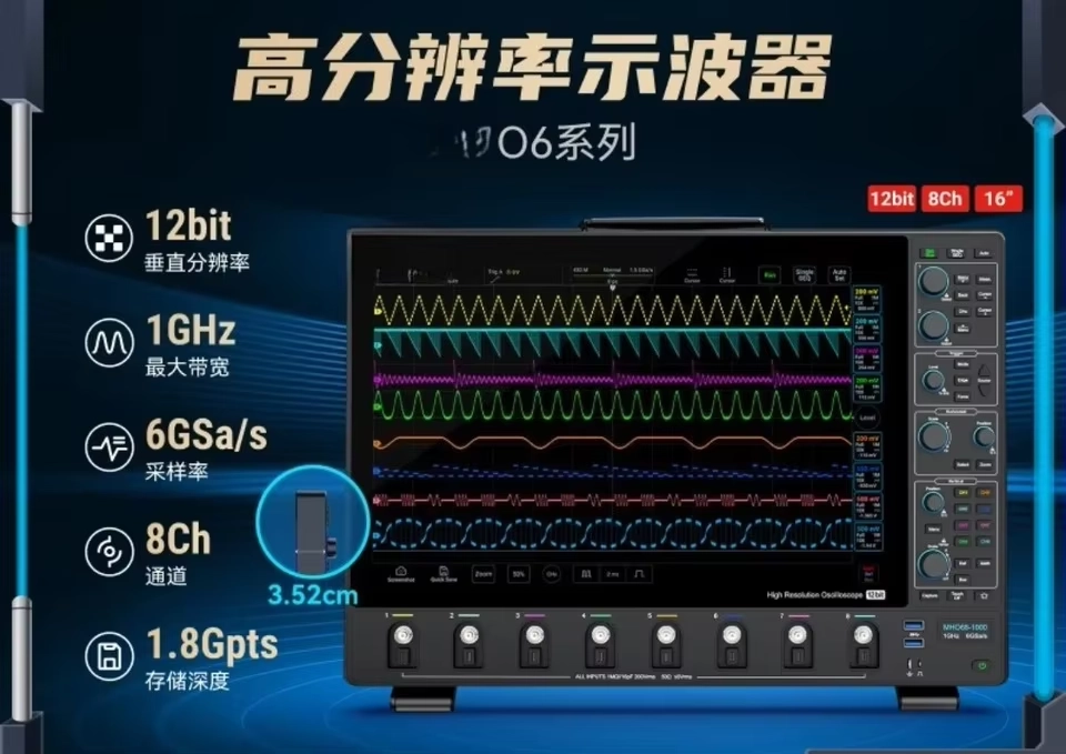 Hochauflösendes Oszilloskop der MHO68/MHO6-Serie 1G, 8 Kanäle mit hoher Bandbreite und 6GSa/s, ultradünnes Design